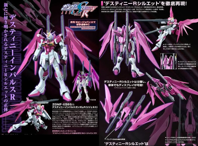 The absolutely stunning Destiny Impulse R from Bandai Premium enters the fray and it is a beautiful kit. This kit comes with the large backpack, "DESTINY R Silhouette", equipped on the back, which is faithfully replicated including the nose with mono-eye on the centre. The twin beam cannons, "Wolfsbane Long Range Beam Cannon" on left & right side can be expanded above the shoulder from the backpack, recreating the shooting pose and held by both hands when removed.