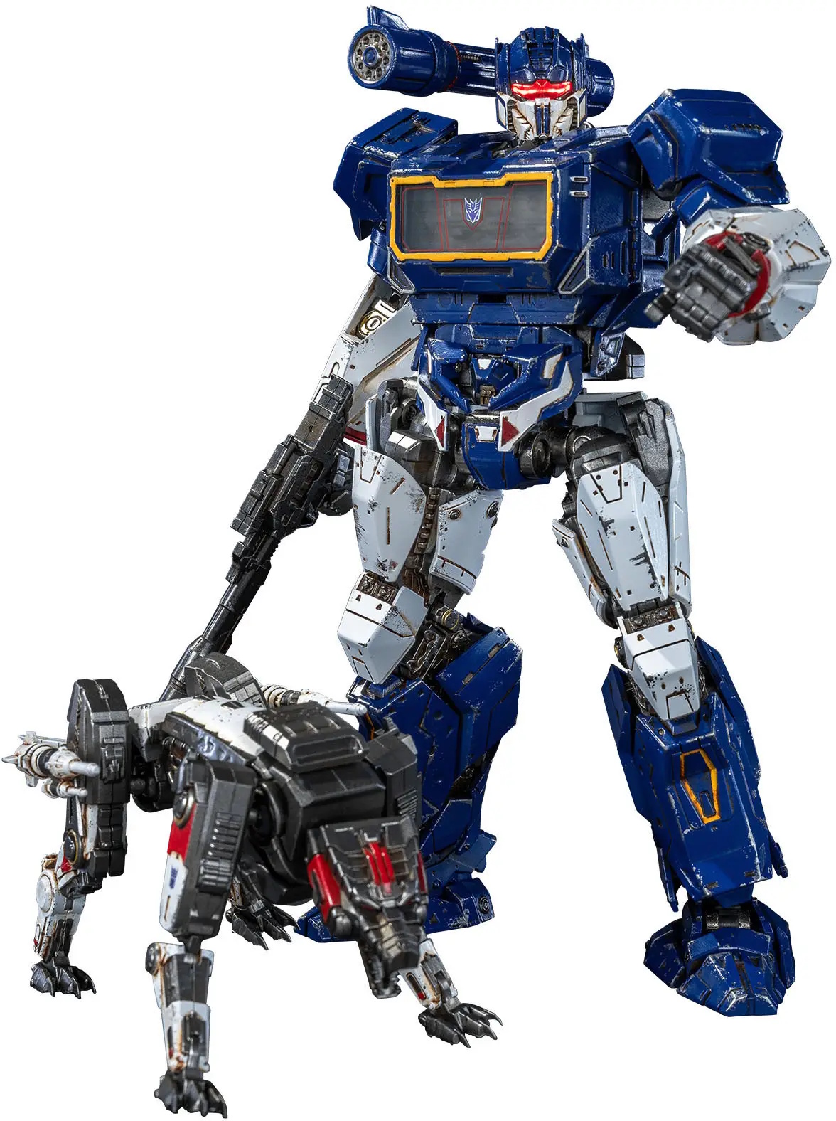 As seen in the 2018 "Transformers" spin-off film "Bumblebee," Soundwave and Ravage are joining the "AMK PRO" action-figure model-kit series from Doyusha! The non-transformable figure of Soundwave will have approximately 40 points of articulation after assembly, while Ravage will have approximately 20 points of articulation. Soundwave has three sets of interchangeable hands plus one set of posable hands, as well as weapons; each figure features a distressed finish to reflect time spent on the battlefield. The figures are made partly of die-cast materials for a sturdy heft, and they have three light-up modes, too; neither glue nor tools are required for assembly. A silicone keychain is included too!