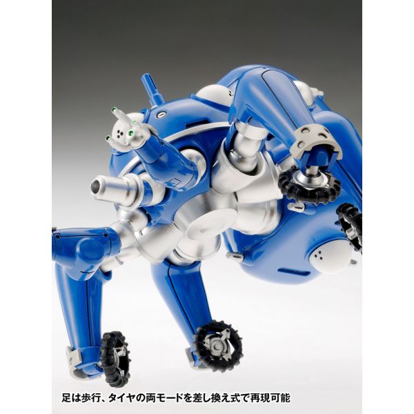 | The Tachikoma, the fan-favorite articulated AI walker/tankette from the anime series "Ghost in the Shell: S.A.C. 2nd Gig," also plays a major role in the latest film in the series, "Ghost in the Shell SAC_2045," and now it's returning to Wave's model-kit lineup! It features polycaps in its limbs for posability after assembly, and it snaps together, too, so glue isn't needed. Tires are included to display it in running mode with parts replacement. An in-scale PVC figure of Major Motoko Kusanagi, dressed in her "2nd Gig" outfit, is included too. This is a re-release of Wave's first-ever Tachikoma kit from 2005! |