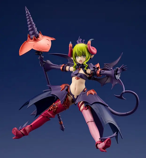 | Velretta from Kotobukiya's "Arcanadea" series is now available as a plastic model kit in their "ReACT-C" lineup in a new look with a darker attribute than before, and a fancy atmosphere! You can recreate her two forms -- the non-combat "normal mode" and the "Willise mode" combat state -- with this one kit; 3mm joints are used throughout, so you can enjoy it in combination with other Kotobukiya original series kits. She comes with four interchangeable facial expressions, too -- a scream, a scheming expression, a crying face and a mischievous expression! Waterslide decals are included to create your own expressions! |